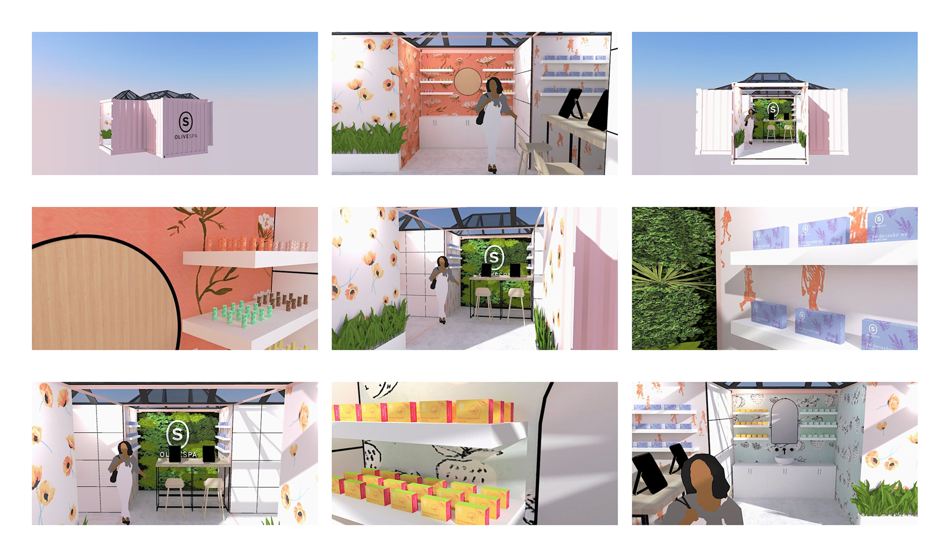 The result of imagining what an Olivespa pop-up shop in a shipping container would look like featuring their cult favorite lip balms and two new soaps.